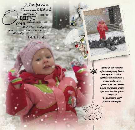 Я ее сделала))) Осталось только напечатать. Всего получилось 68 страниц - не отпускает меня мания гигантизма))) Но мне нравятся фотокниги, где много страниц. Последняя осенняя страничка, она же практически уже зимняя.