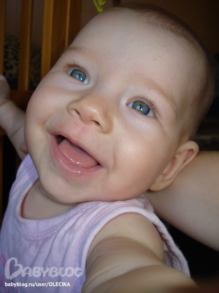 Ростём, взрослеем! Итак, что у нас: У меем ползать быстро-быстро, ловко встаём на ножки с опорой, когда встаёт возле дивана то пытается вдоль него ходить! И у неё уже неплохо получается если её подстраховывать чтоб не упала. :) Хорошо шагает когда держишь её за ручки. Тащит в рот всё подряд. Особенно любит бумажки и кулёчки. Умеет говорить "ма-ма-ма" а если ей больно, говорит "буль-буль". Когда хочет обратить на себя внимание, сильно машет руками. :) Так любит Алисочку! Если видит что Алиса спит, то пытается её разбудить. Если не видит рядом Алису, то начинает её искать. А как только та появляется, Дашка сразу начинает махать руками и улыбаться. :) На прогулке тоже - если Алиса из её поля зрения пропадает, она начинает из коляски высовываться - высматривает где Алиса.