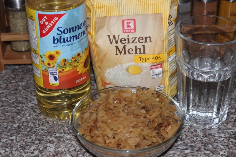 Смешиваем воду, масло, соль, муку, как только тесто перестаёт липнуть- тесто готово, месить его очень легко, так же как и раскатывать.