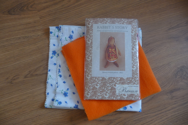 отрез х/б ткани 50х90, кусок флиса 40х40 и новый набор для изготовления текстильной зайки