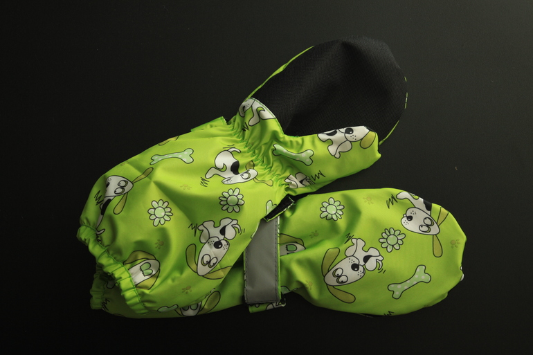 Ладошка укреплена прорезиненной вставкой, утяжка хлястиком на липучку, а так же резинка. По краю так же резинка. Светоотражающая лента для безопасности передвижения в тёмное время суток, ну и внутри в качестве утеплителя флис.