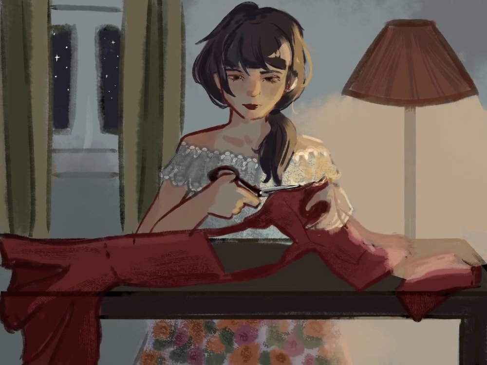 Два дня слёзы лились рекой, солёной и бесконечной. Ночами Ксюша плохо спала, сжимая в кулаке обрезки ткани, которые мама не успела убрать. Они служили ей носовыми платками и только добавляли страданий. Вздрагивая во сне, девочка заново проживала разочарование, когда ей снился стол в маминой спальне, засыпанный красной стружкой от ткани. Мама видела переживания дочки и не знала, как быть.