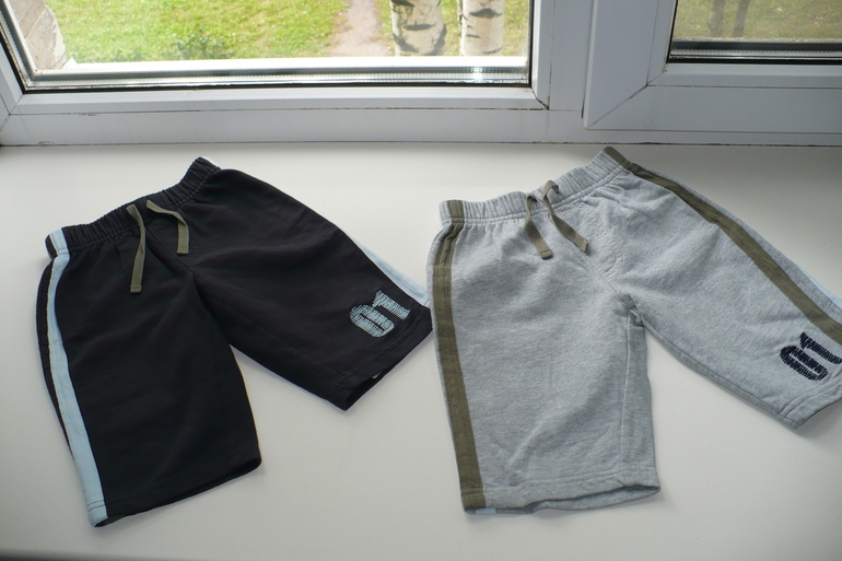 2) Сет из 2 шорт mothercare Маркировка 6-9 месяцев. Реально носить от 92 до 104 см. Состояние хорошее. На темных на кармане сзади микродырочка меньше 1 мм. При носке незаметно. Цена за двое - 200 рублей.