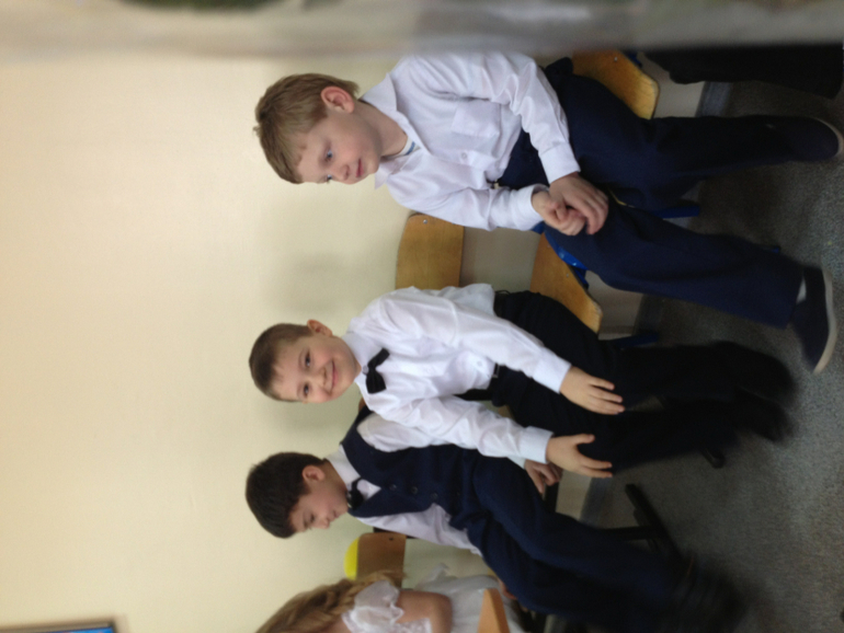 Сегодня у Дани в классе был праздник посвященный празднику 8-е марта.Хочется сказать огромное спасибо нашей учительнице,которая так все хорошо организовала и провела.праздник удался!было так трогательно и мило...я чуть не расплакалась...Детки наши подарили нам цветочки,шарики-сердечки и наши портреты и поделки,которые делали на уроках аппликации.Правда я танец один не видела,т.к Мишулька расплакался...но ничего на видео потом посмотрю.ну и немного форточек: