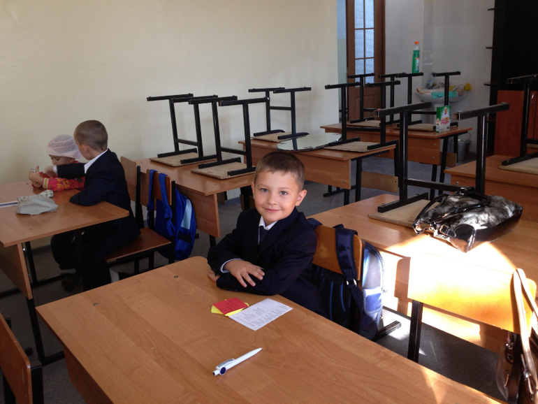 В пятницу мы ходили в школу,познакомились с нашей учительницей,попали в 0 "Б" класс,учиться будем с 11:00 до 14:30. Данька такой радостный был...очень он ждет,когда же наконец и он пойдет в школу...Надеюсь этот запал на закончится дня через 2 после учебы)))).