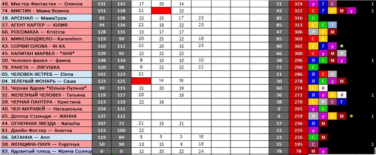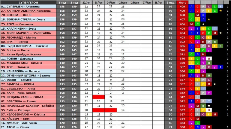 ТАБЛИЦА КРУТИЗНЫ СУПЕРГЕРОЕВ!!! если вы не обнаружили свои баллы, хотя вносили из в гугл=форму, или они не те что вы вносили - напишите Затане (Ann) в личку!!!