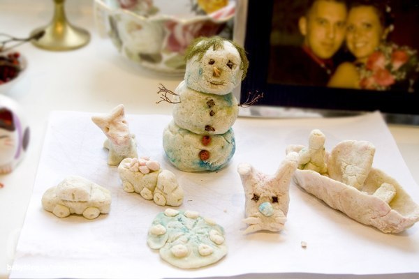 а это мы лепили из теста и сушили в духовке и на окне,Максимка как мог старался все делать левой рукой.Вообще,он многому научился левой рукой,кушать,рисовать,собиратья пазлы,даже немного лепить=)).