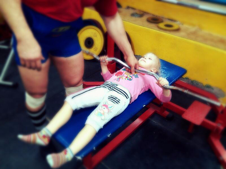 жим лежа от дочурки, как папа сказал начало пути на Олимп )))