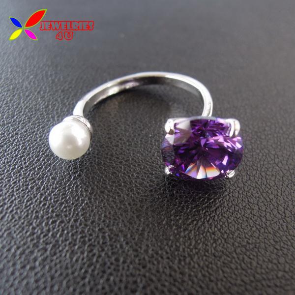 В наличии новинка-кольцо "Камушки" с искусственным жемчугом и цирконом под аметист