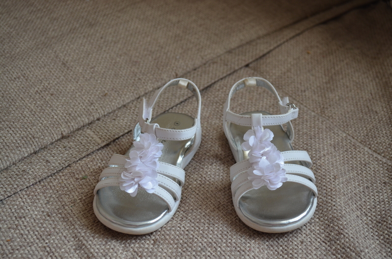 Продам белые сандалики американской фирмы George. Новые, заказывали из Штатов, размер 6, по стельке 14 см. Очень нарядные, но не подошли по полноте (у дочки очень худенькие ножки). Цена 500 рублей.