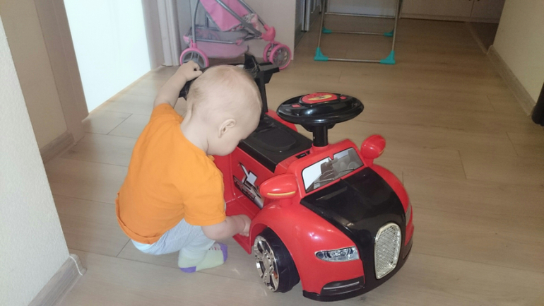 егор конечно еще не совсем понимает как нажимать на педаль чтоб она ехала, но иногда случайно получается)))))