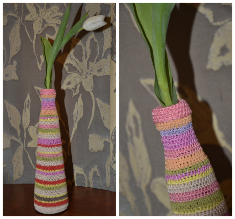 В принципе больше нечего добавить кроме того что остаточки пряжи которые мне мозолили глаза долгие годы....стремительно сокращаются. А такая ваза в мою будущую беседочку будет кстати.