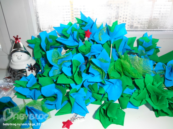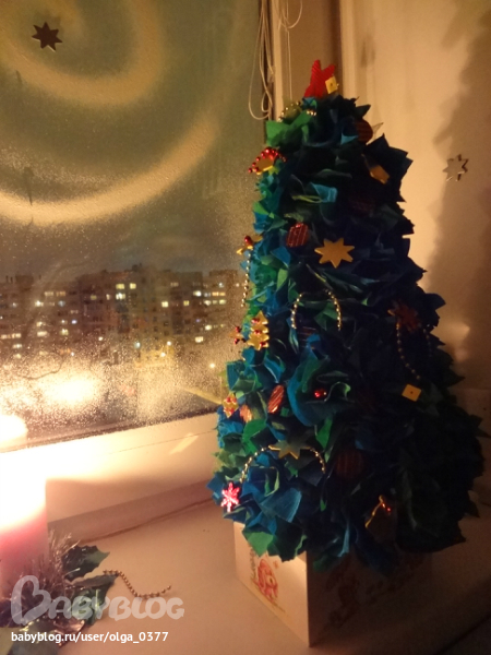 Первый раз в жизни решила сделать ёлочку с конфетами, захотелось сделать маленький приятный сюрприз нашей любимой воспитательнице. Аленка моя её очень любит и принимала активное участие не только в поедании "лишних конфеток", но и в украшении нашей ёлочки.