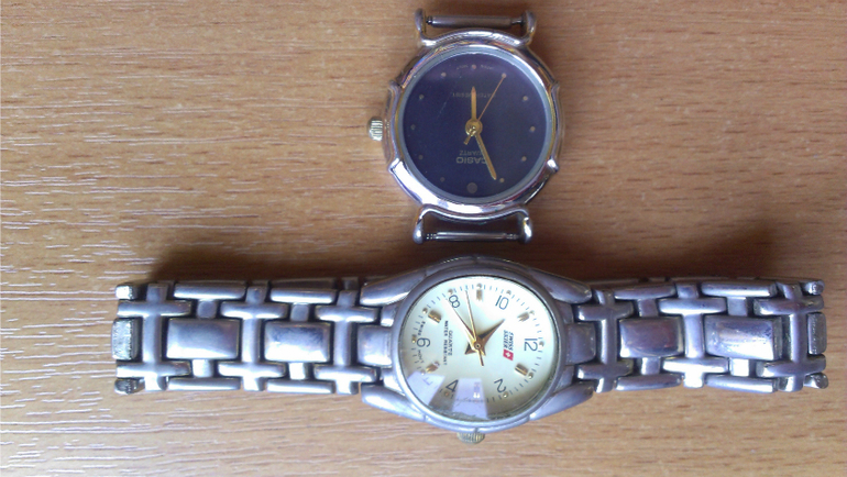 -часы женские кварцевые, CASIO черные без ремешка, SWISS (швейцария) по 200р. - не ходят - батарейки старые, до этого все было исправно.