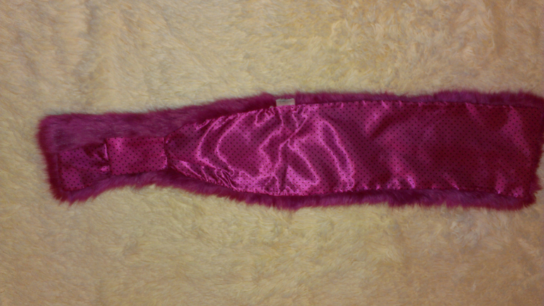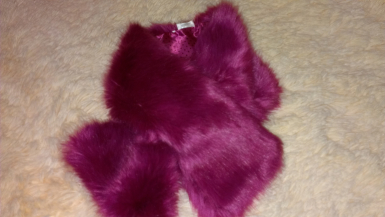 --очень симпотный шарфик H&M из искусственного меха (полиэстр) В ИДЕАЛЕ с петлей. в которую продевается конец шарфика, на шее сидит плотненько, цвет более малиновый, темная фуксия, не фиолетовый, 500р