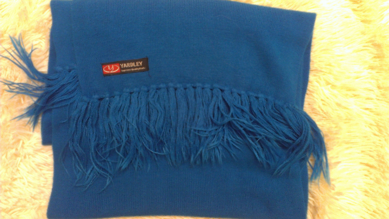 ---ярко-голубо-синий очень мягкий, приятный, широкий и длинный, 400р,