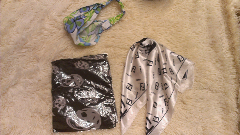 ---очень оригинальный типа атласный платок на шею с петелькой, в нее продеваем и делаем красивый бант - очень прикольно, 300р