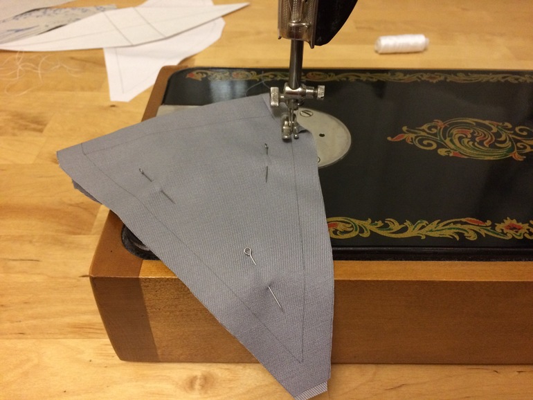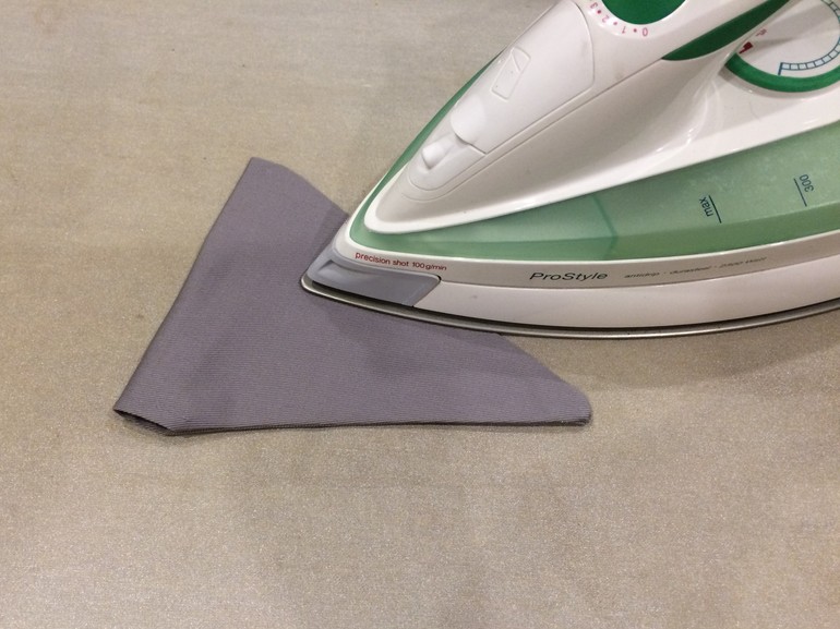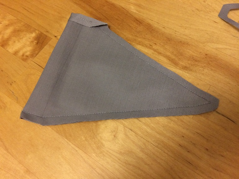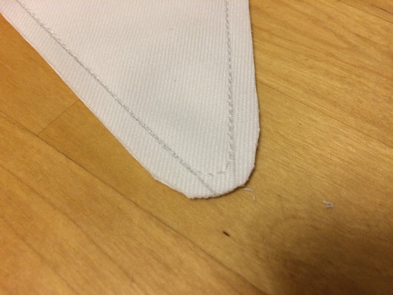 Поняла, что зря застрочила острый угол - он плохо выворачивается. Со следующим флажком исправилась и прошила закругленно: