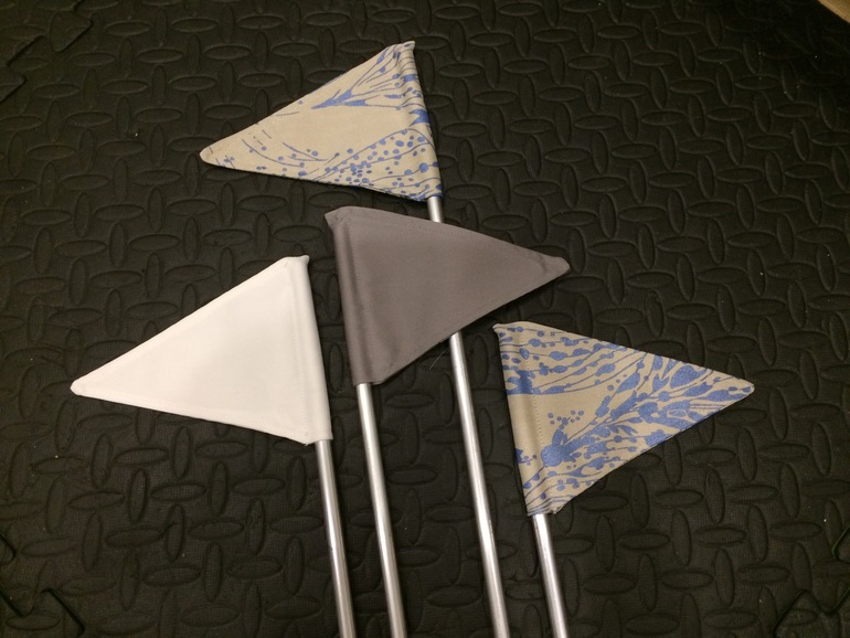 И выкроила флажки: один серый, другой белый, да еще два пестрых.