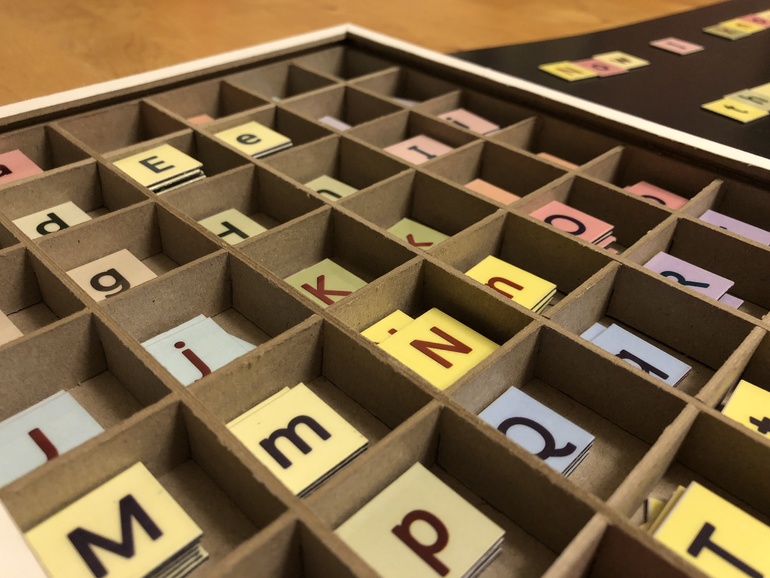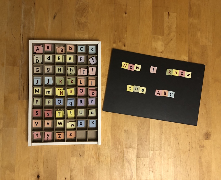 ТворчествоСделав магнитную азбуку, я осталась не совсем довольна: букв много, искать нужные - долго, половина высыпанных из коробки букв перевернуты лицевой стороной вниз. Надо было как-то их организовать.