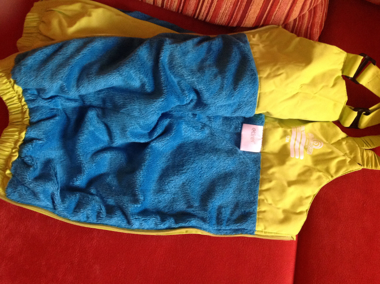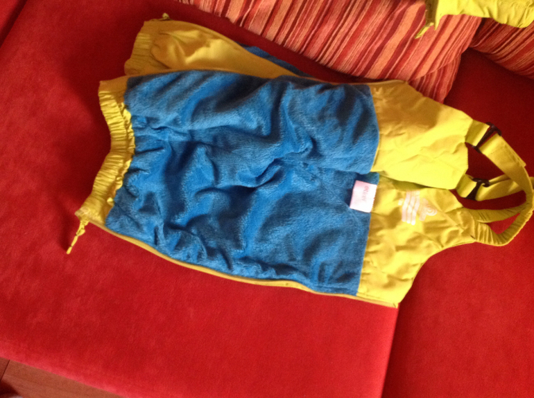 Полукомбинезон сверху на липучке, по бокам застегивается на молнию.