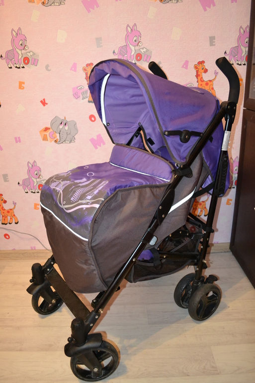 Коляска в очень хорошем состоянии. Пользовались пару раз, т.к. есть еще одна. 4 положений спинки. Колеса передние поворотные. Задние с фиксатором. Пятиточечные ремни безопасности. Маневренная. Бампер, накидка на ножки. Корзина для покупок. Вес 7кг.