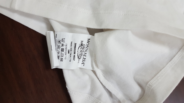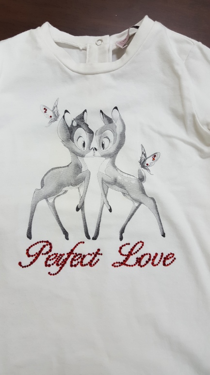 3) Румпер Monnalisa с девочкой - маркировка 12 мес. (талия 20 см, ширина от подмышки до подмышки - 23 см, длина изделия по спинке - 36 см). Одевали активно, но в хорошем. Все на месте. Маркировку бирки срезала, так как царапал тело ребенка. Заклепки слабенькие, иногда поджимала их. Цена: 900 руб.