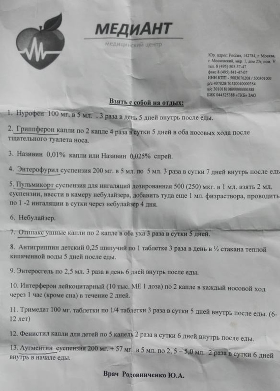 Получили вот такой универсальный список от педиатра.