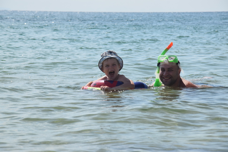 Главное тёплое море, в основном в июне были на море, купались, хорошо вроде было, но сейчас-это нечто, не сравнить с июньским. Димку не вытащить было, а мама и рада:)