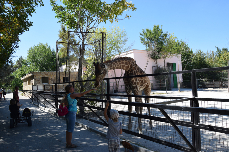 И огромный зоопарк. Больше всего запомнились жирафы, мы кормили их яблоками, покупали с собой, там очень дорого (банан-50р., 3 рыбки для тюленя-200р.)