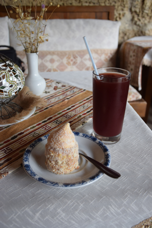 В местном кафе "Караман" испробовали чебуреки,а в кофейне "Кезлев къавеси" выпили ароматный кофе, приготовленный по древним традициям и холодный чай муж брал, тоже очень вкусный с вкусняшками (рекомендую)