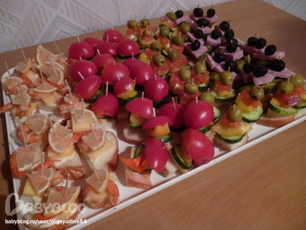 Девочки,сделала тут канапе,на закуску очень удобно,мы брали в сауну,отмечали др мужа. Разные блюда-закуски были,но канапе очень порадовали. На природу думаю самое то,и на фуршет тоже. делала несколько видов: