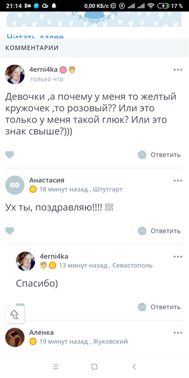 Девочки ,а почему у меня то желтый кружочек ,то розовый?? Или это только у меня такой глюк? Или это знак свыше?)))