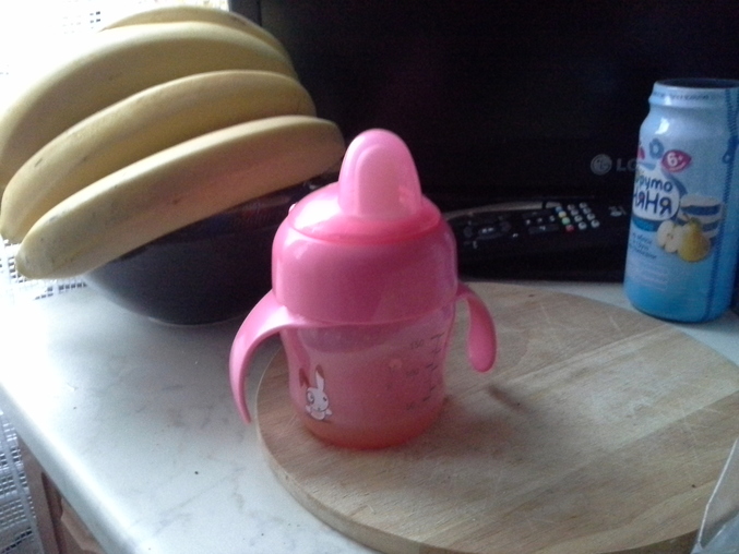 новый Авент,с мягким носиком,потратила 500р и на фиг спрашивается!Она его грызёт и смеётся,крышку открывает-закрывает и всё,пить не собирается!Вот.У нас кстати вылезли верхнии клыки!Всего теперь 8 зубов!У Милы новая забава теперь.Начинает ходить на мысочках,как балерина и смеётся.Одеваю сандали,снимает через 10 минут.Были в Хеппиче,затарились детским питанием на 12 дней праздников.Пока муж оплачивал эту гору еды,я ходила вдоль рядов с колясками,трогала,катала и улыбалась как дура!))))