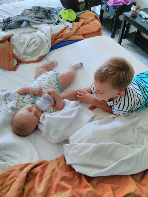 Планы на отпуск в этом году менялись раз 100 точно. Последняя идея с Грецией вылез лаближе к концу июля совершенно случайно. У мужа есть университетские друзья( пара Албанцев и англичанин) и они раз в год где-то встречаются. Они предложили Грецию и мы поменяли все планы на нее. Хотели ехать на машине туда-обратно и уже за два дня до подачи на визу, Женя нашел какие-то дешевые билеты Аэрофлота и мы снова все поменяли.))) На визу подавали в визовом центре на меня и детей. У Мити кончился канадский паспорт, а Максиму не успели сделать. Все бы ничего, но человек принимавший у меня документы, не взял у меня копию Жениного паспорта и в связи с этим изрядно нам потрепали нервы. Но визы мы получили за день до вылета на три года! Спасибо Грекам. Путешествие было очень насыщенным. В основном это были не туристические маршруты. Афины-Дельфы-Метеоры-Ионина-Кастро Сития-Парга-Лефкада-Митиканс-Креопере-Спарта и весь южный Пелопонес-Афины-Сонио. Дети перенесли поездку хорошо. А вот меня подкосило очень. Что-то с пищеварением случилось. Тяжко конечно быть там, где вокруг как трава растут персики и инжир и ничего не есть. Греция в общем и целом понравилась. Греки очень добродушный народ. Детей обожают. Максика все затискали. Но и в то же время жуткие раздолбаи. Они так привыкли жить. Но мне как-то дикова-то это. Огромный минус лично для меня-Греция, одна из самый курящих наций. Я не встретила ни одного не курящего грека. Зато какое там море......какие горы.... Мы уже с мужем присмотрели себе деревеньку в горах....)))