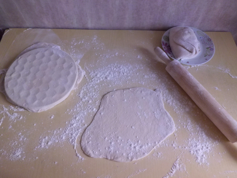 4. А вот так раскатывается тесто и делаются ваши пельмешки