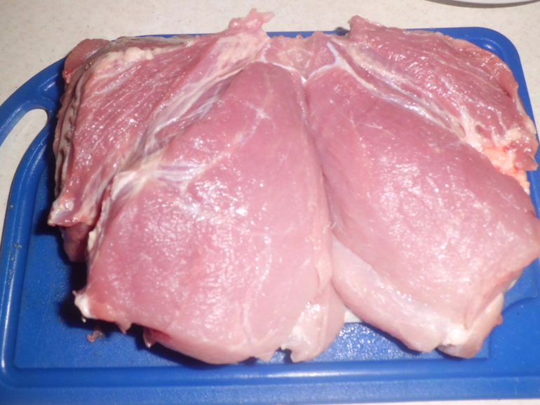 1. Жир, если заказчик специально не просит пожирнее, Я ВСЕГДА ВЕСЬ СРЕЗАЮ!!! Так выглядит свинина из которой я делаю фарш для котлет и пельменей.