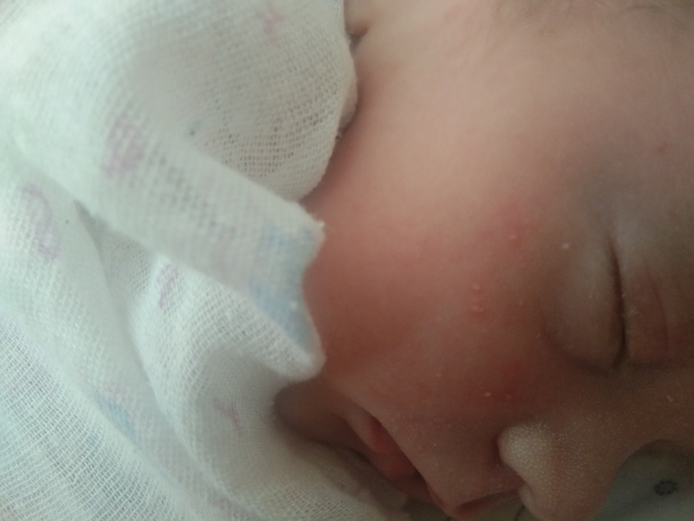 У нас тоже так было. Педиатр сказала,что малыши так цветут после рождения,это не надо лечить,пройдёт само