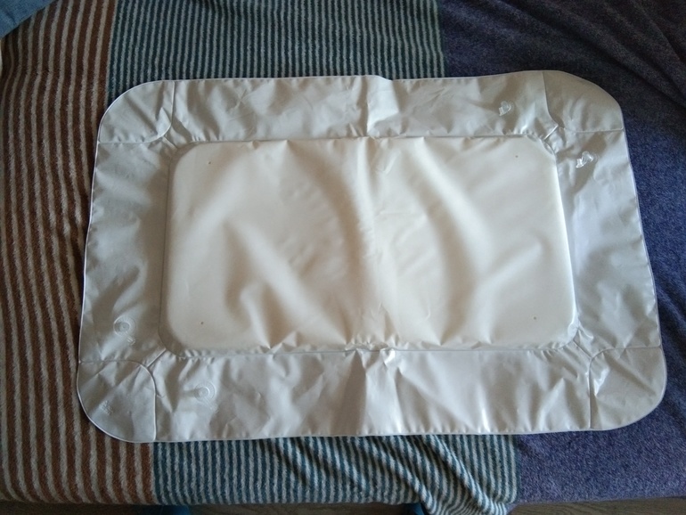 Это пеленальная доска такая с надувными бортами. Можно положить на стол и обойтисьбез пеленального комода.