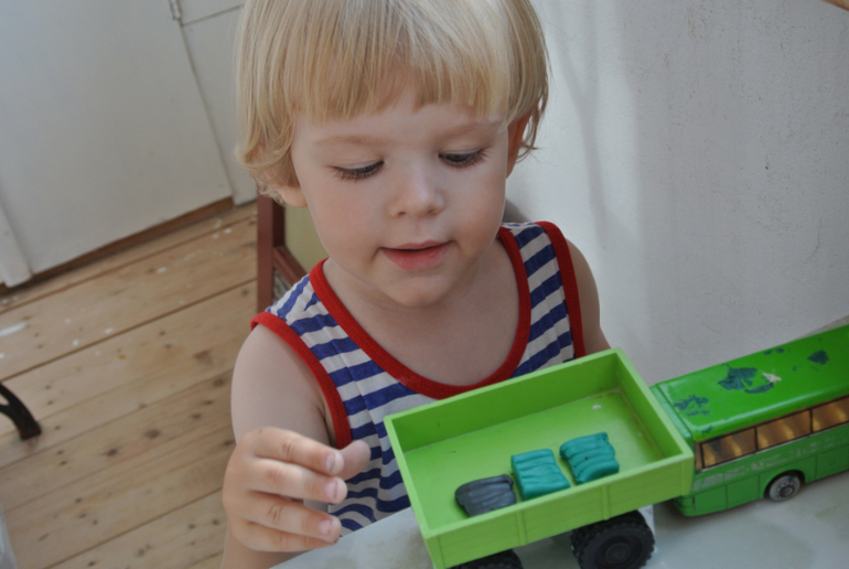 Нашему маленькому Мишелю (ласково зовут бабушки Мишу) 2,1г. В фаворитах игрушек - машинки. Казалось бы как с ними может малыш двухлетка. Оказывается объект обожания вдохновляет на неожиданное творчество.