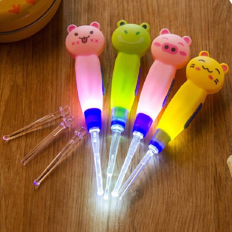 Палка-ухочистка-любовь всей нашей семьи (хотя у папы есть еще любимая железная тоже с али). ОЧЕНЬ удобно смотреть ребенку в ухо. Плюс она пластмассовая, а значит не холодная, следовательно не противно по ощущениям. Стоит копейки в районе 30 р. Ребенок любит ей баловаться как фонариком. У нас лягушка.