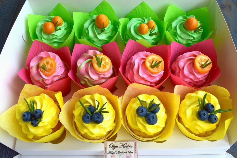 Ванильные капкейки с вишнёвой и лимонной начинками и шапочкой из нежнейшего крем-чиза для любимого Шефа, а ещё уточка из мастики, так как любимым хобби является охота.🤗