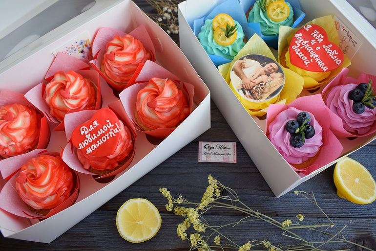А ещё были вот такие красивые яркие капкейки на годовщину свадьбы моих постоянных клиентов!💒💍👰Воздушная ванильная и шоколадная основа (бисквит) с ягодной начинкой и шапочкой из нежнейшего крем-чиза!🍦🍰🍭🌟.
