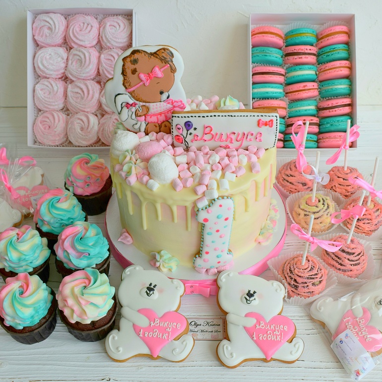 вроде недавно делала тортик на полгодика, а тут уже сладкий стол на первый День рождения!