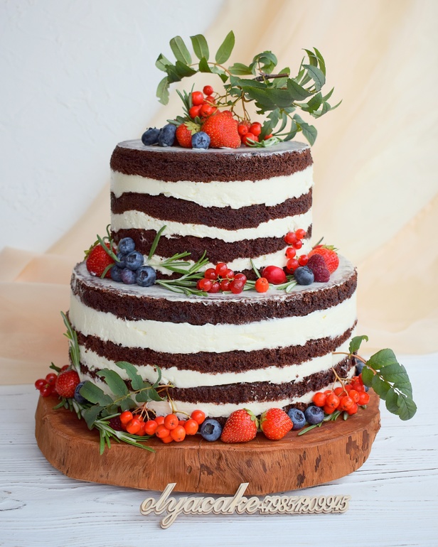 Голый" свадебный торт на осеннюю 🍁🍂💒 свадьбу в интересном и красивом стиле Рустик (деревенский стиль)..