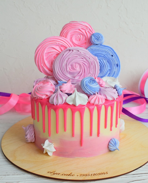 Такой девочковый тортик с разными оттенками розового и сиреневого, с вкуснейшими меренгами!!!