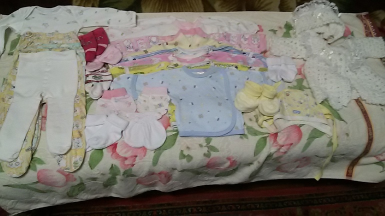 Машинка трудится и я стараюсь не лениться. Почки болят, домашнюю работать делать тяжело, поэтому взялась за приятные хлопоты. Перестирала и переутюжила все детские вещи, что были дома - купленные в америке и оставшиеся от дочери мужа - выбрала самые лучшие и чистые. Еще одеялко и всякие бытовые мелочи, за одно к переезду готово будет все...