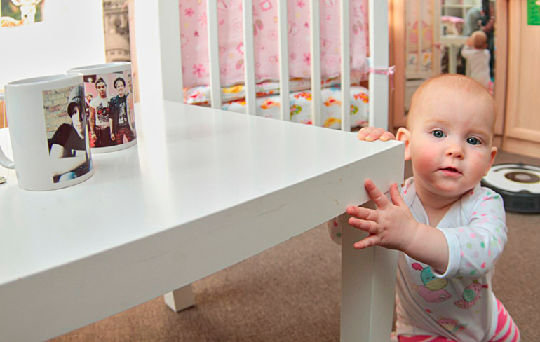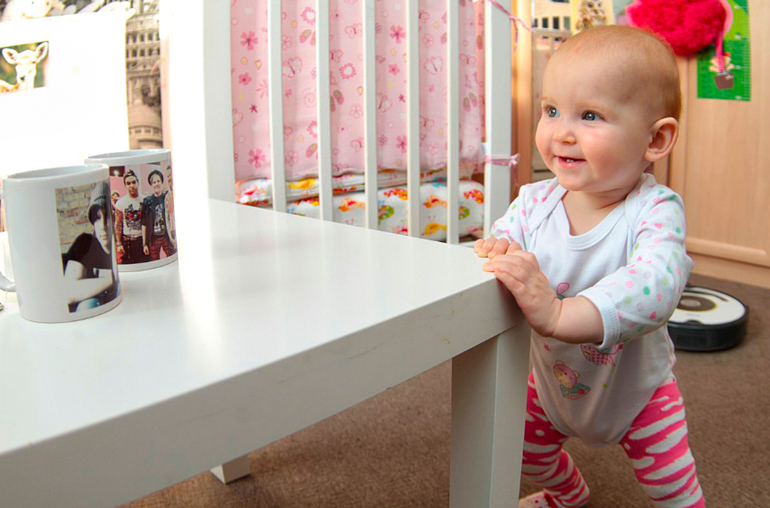 а еще на днях заметили, что если она заиграется и ее отпустить, то стоит сама, пока не поймет что ее не держат, и тогда рушится со всего роста)