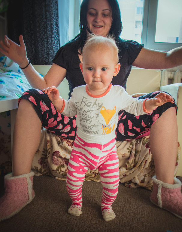 не хочет короче сама стоять, коза) обожает музыкальные игрушки - ксилофон, молоток, колотушку, и фотоаппарат который издает звук затвора если нажать на кнопку) она иногда жмет, а иногда бьет кнопкой об пол))) начала строить предложения с интонациями на младенческом) не просто слоги) ну и конечно мои излюбленные ладушки очень задорно хлопает, танцует если начинаешь танцевать или петь перед ней, и исправно машет пока-пока) сейчас работаем над тем чтобы научить показывать пальцем на то, что хочется)