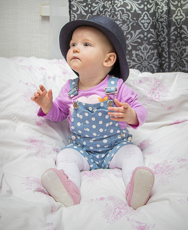 мерили вчера на нее платья и всякие шапочки-повязочки и с грустью осознали что до года всего 2 месяца а Оливия категорически не выносит головные уборы, реально не успеваешь закончить одевать а она уже срывает! так что будет в пышном платье и лысая, жуть(( как люди с этим справляются? хочется же чтоб красиво было, годик же! ну не приклеивать же мне эту повязку ей?) сдирает и шапки на завязках тоже, вообще все, иногда она даже просто сидит дома на полу и делает руками как будто снимает шапку с головы, видимо волосы ее тоже бесят)